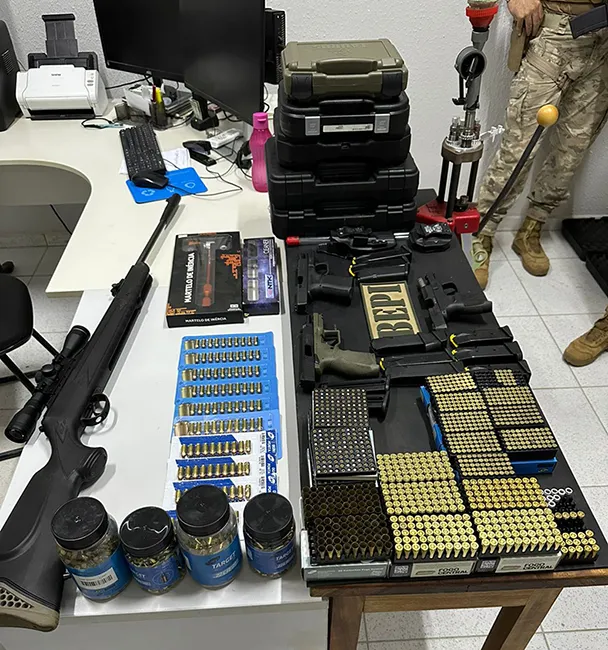 No total, foram encontradas três pistolas, uma carabina e diversas munições. O arsenal foi encaminhado para a Central de Flagrantes de Parnaíba, onde ficará à disposição das investigações.