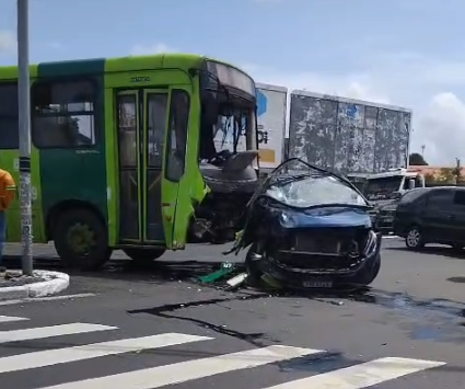 Um ônibus colidiu com um carro no cruzamento da Avenida Miguel Rosa com a Rua Magalhães Filho, na zona Norte de Teresina, na manhã desta terça-feira (24).