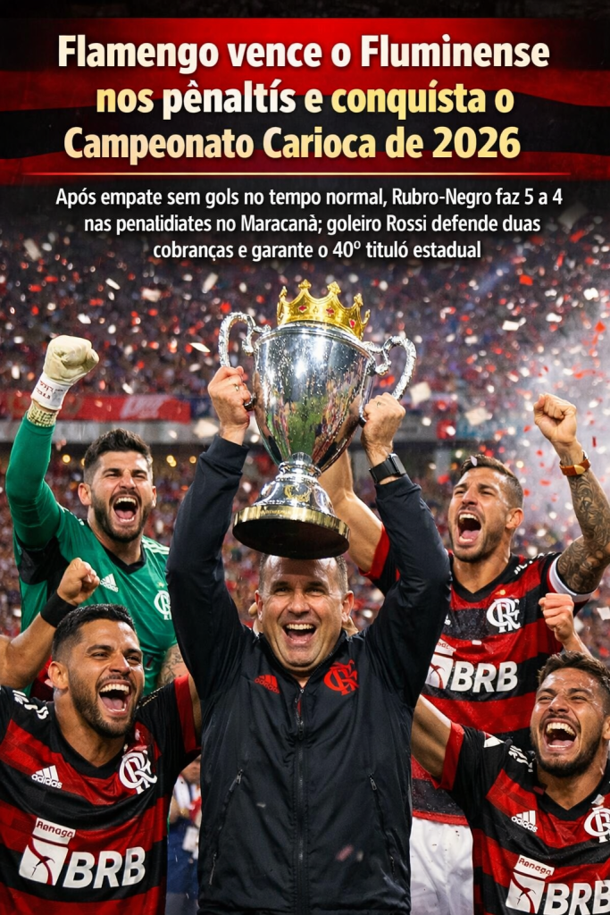O Flamengo conquistou o título do Campeonato Carioca de 2026 após vencer o Fluminense nos pênaltis por 5 a 4, neste domingo (8), no Maracanã, no Rio de Janeiro.