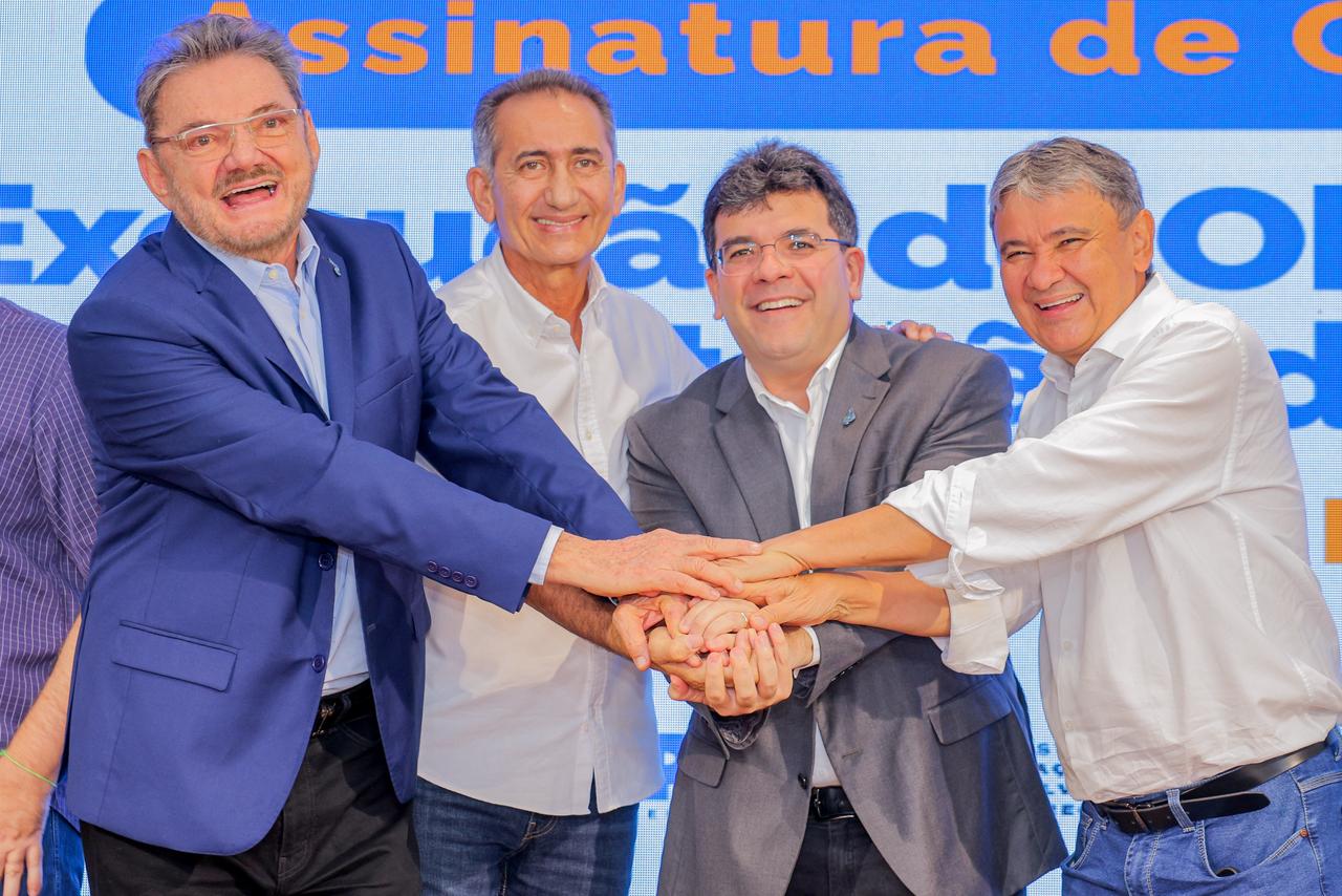 O governador Rafael Fonteles participou, nesta quinta-feira (26), da assinatura do contrato para execução das obras de implantação da adutora de Jaicós. A solenidade foi realizada no Salão Branco do Palácio de Karnak e contou com a presença dos ministros Waldez Góes, da Integração e do Desenvolvimento Regional, e Wellington Dias, da Assistência Social, Família e Combate à Fome. O investimento é de mais de R$ 128 milhões, recurso que será aplicado na estruturação do sistema de abastecimento hídrico no município.